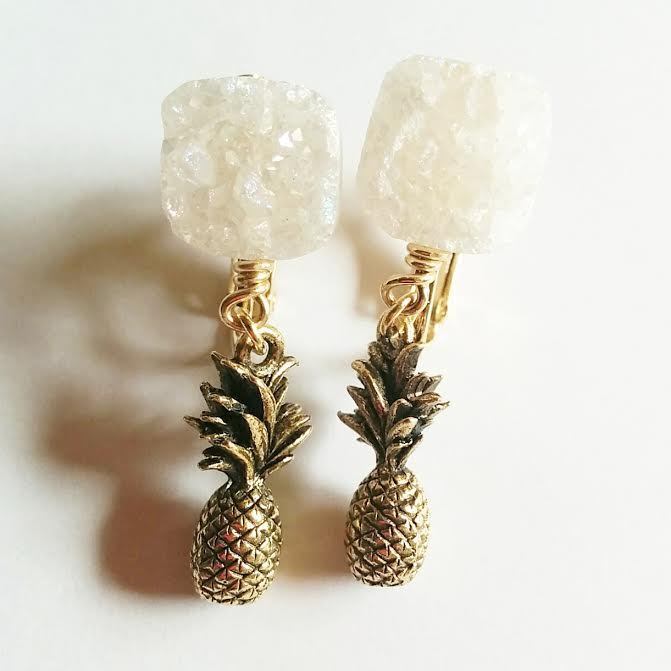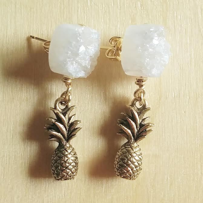 今回は透明感のあるクリスタルドゥルージーとパイナップルのピアス&イヤリング♪
