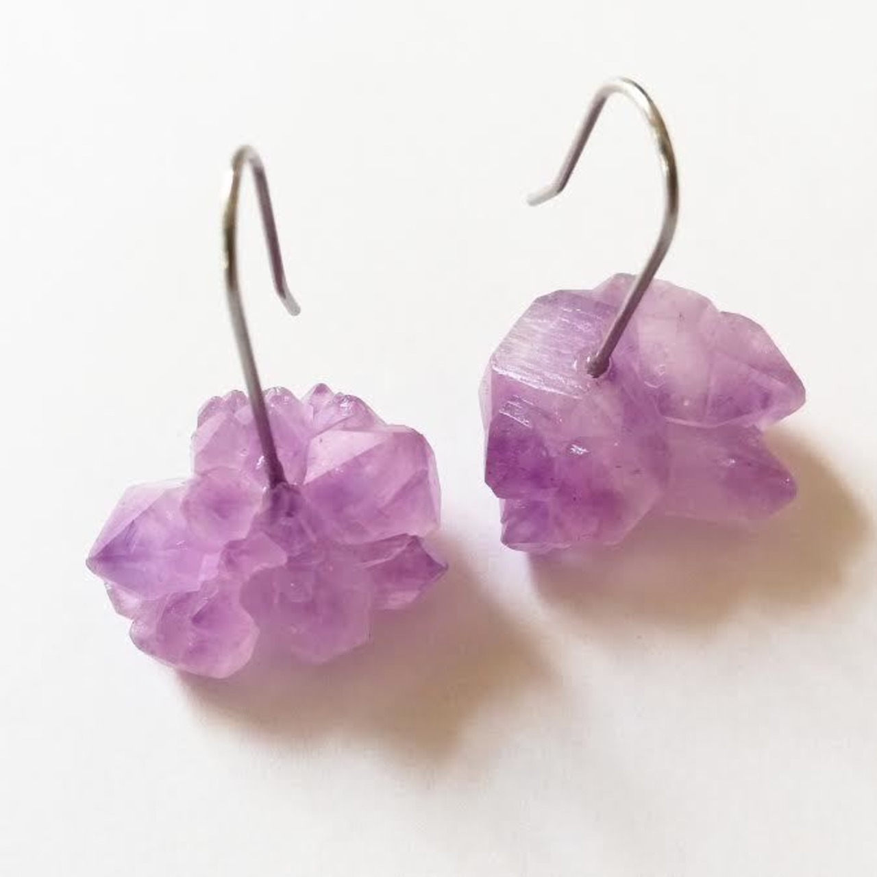 大粒ラフロックアメジストを大胆に使用しシンプルなピアスに仕上げました♡
