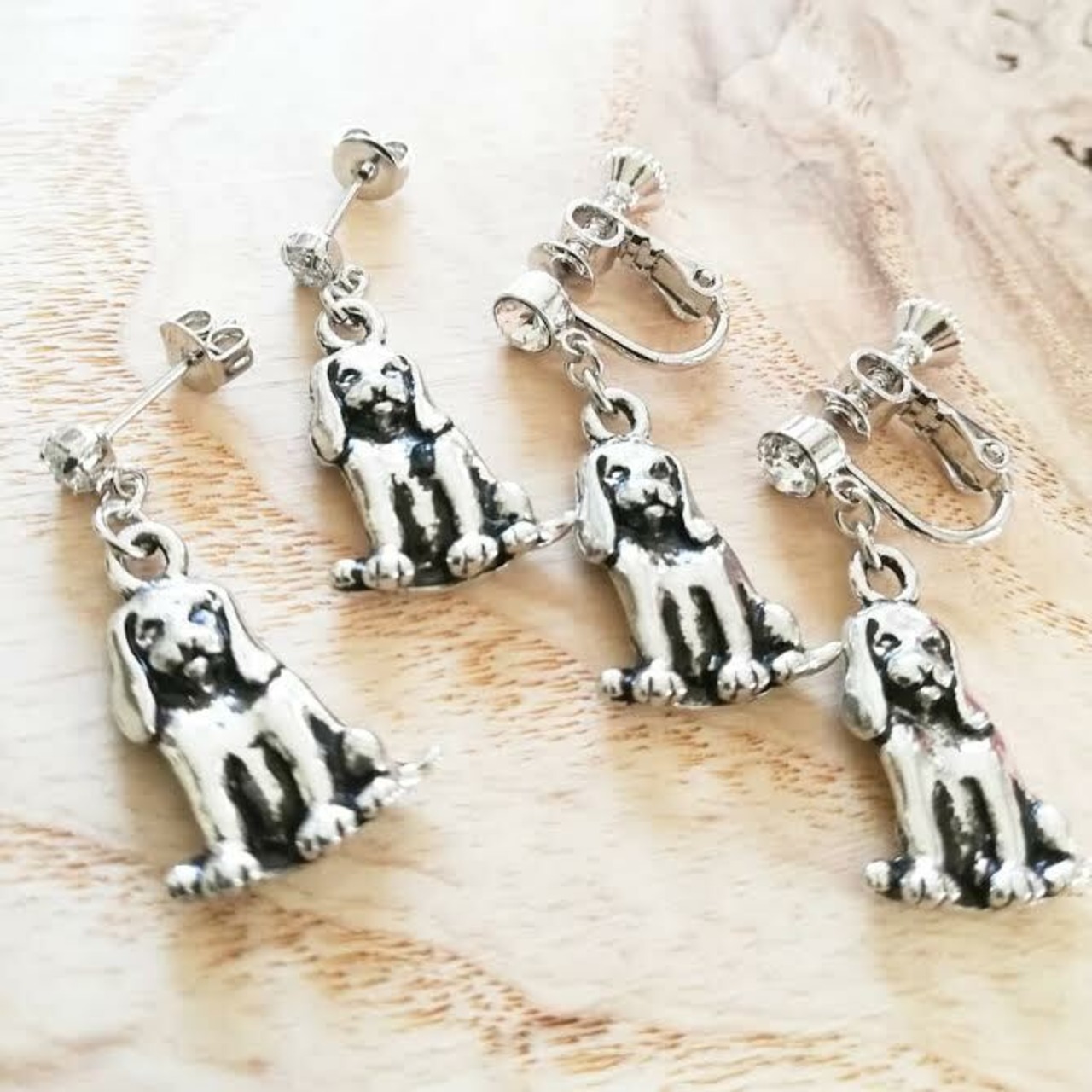 可愛らしい子犬チャームに小さめのキュービックジルコニアがさり気なく輝いてシンプルで大人かわいいピアス&イヤリングです。