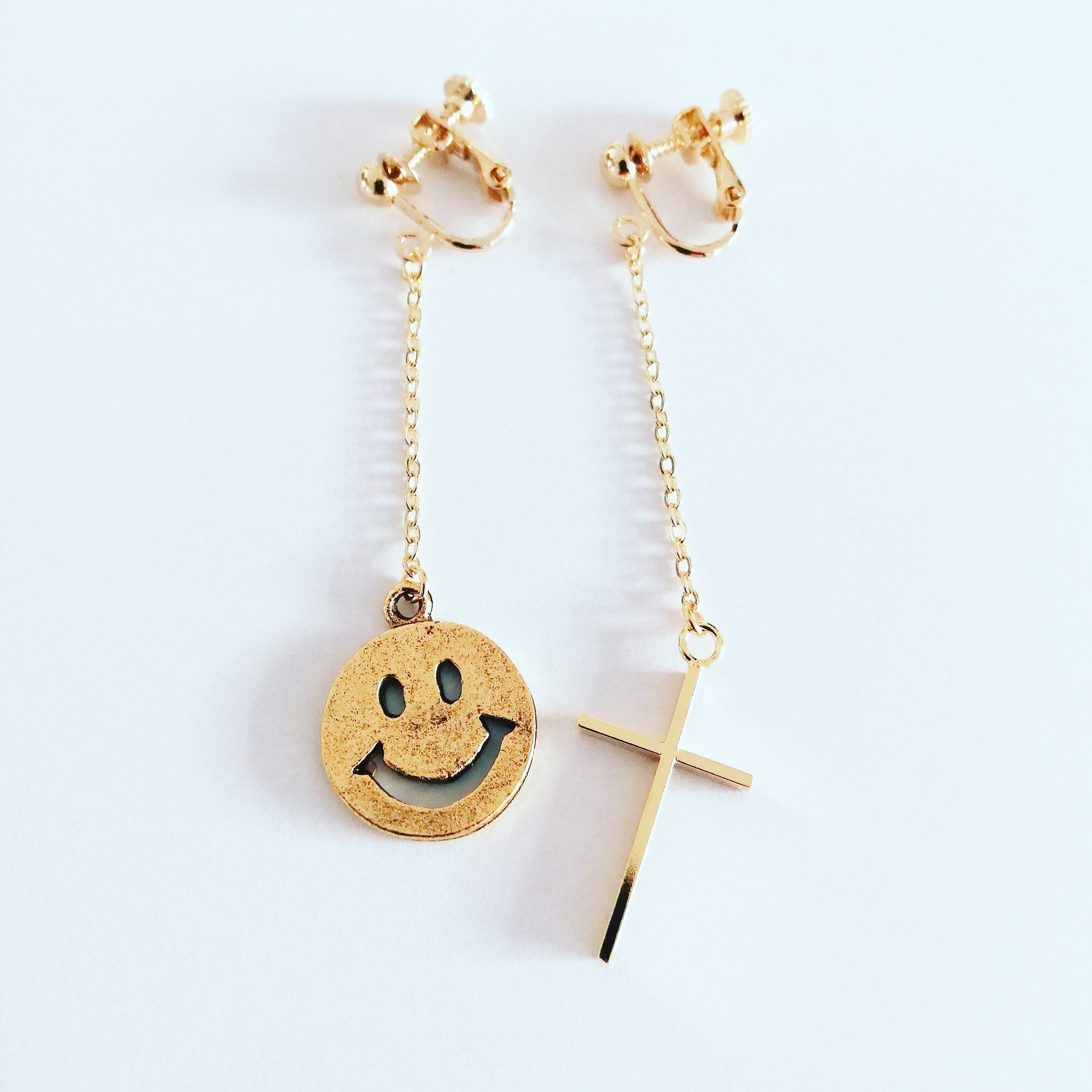 定番モチーフ、スマイル+クロスのシンプルなピアス&イヤリング♡